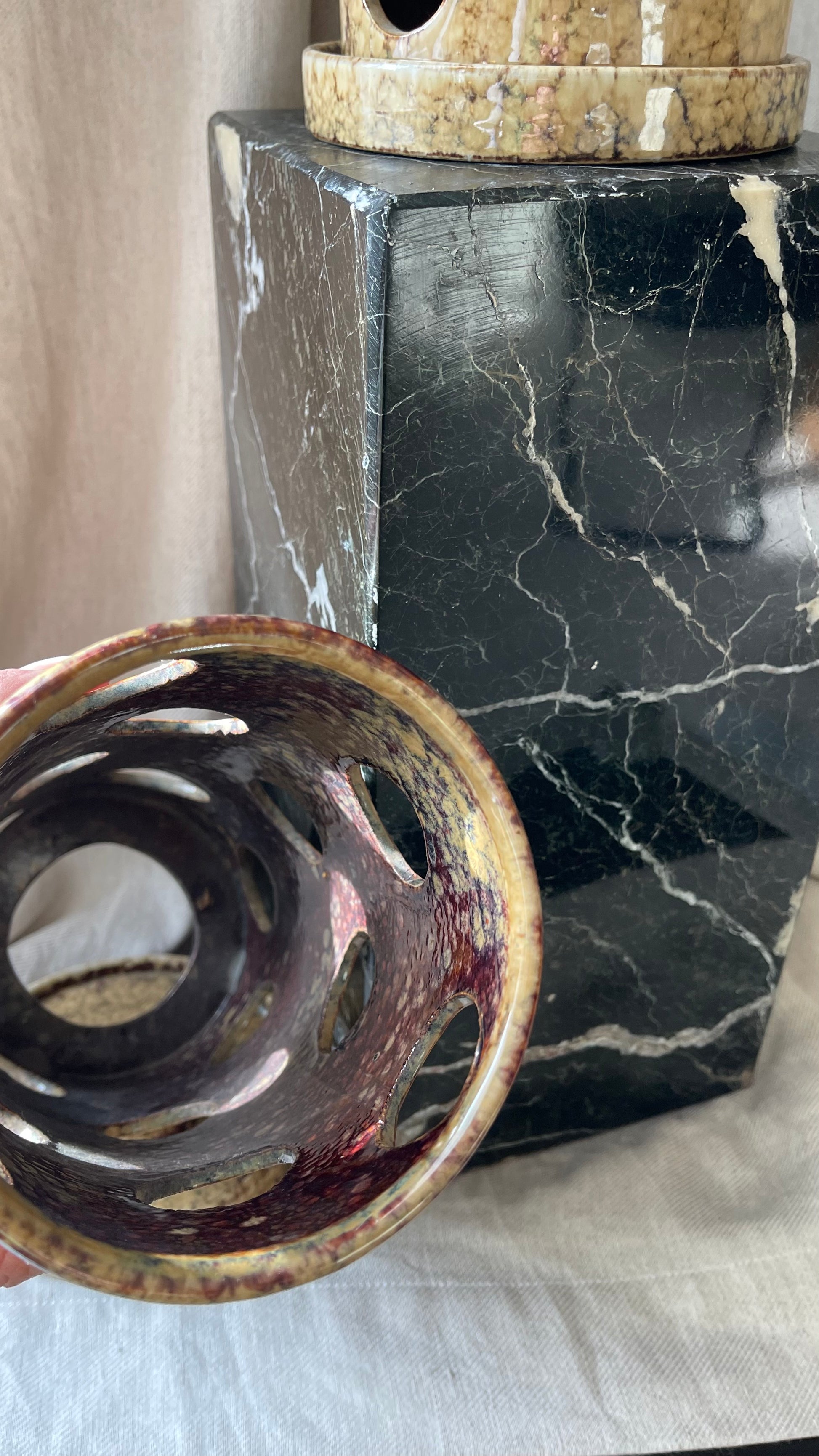 A large pair of ceramic tea light holders