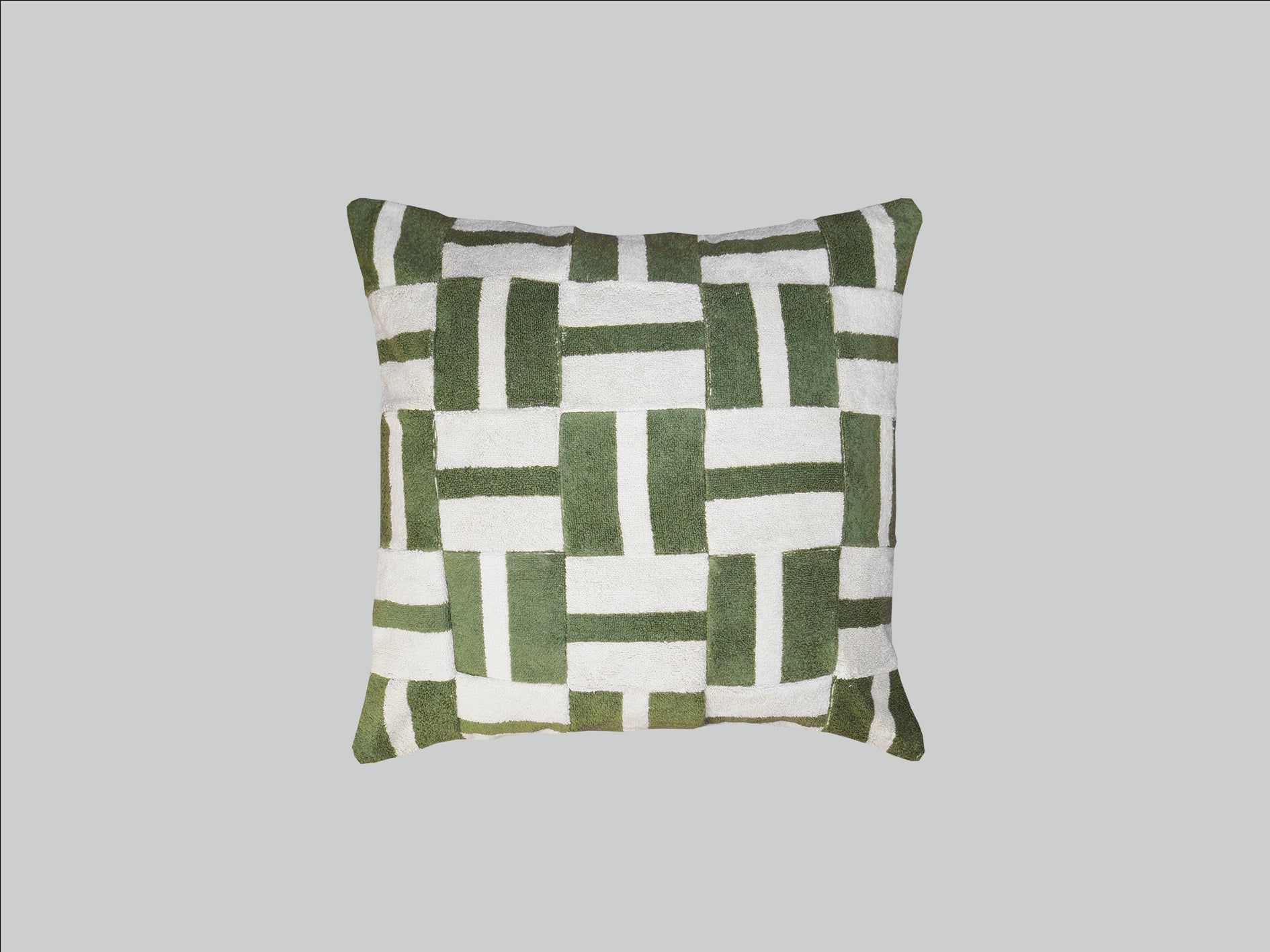 Geometric green towelling cushion