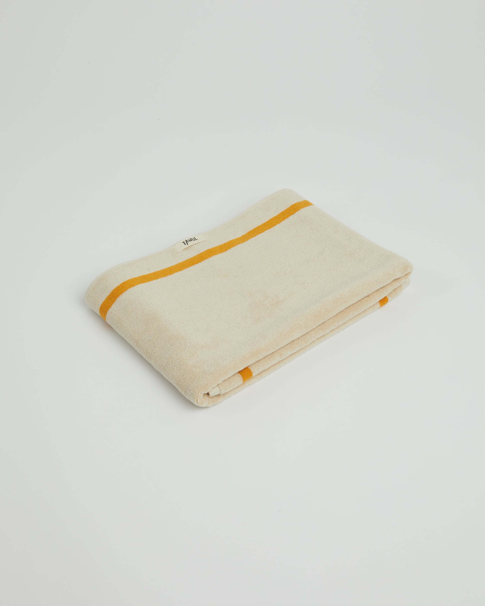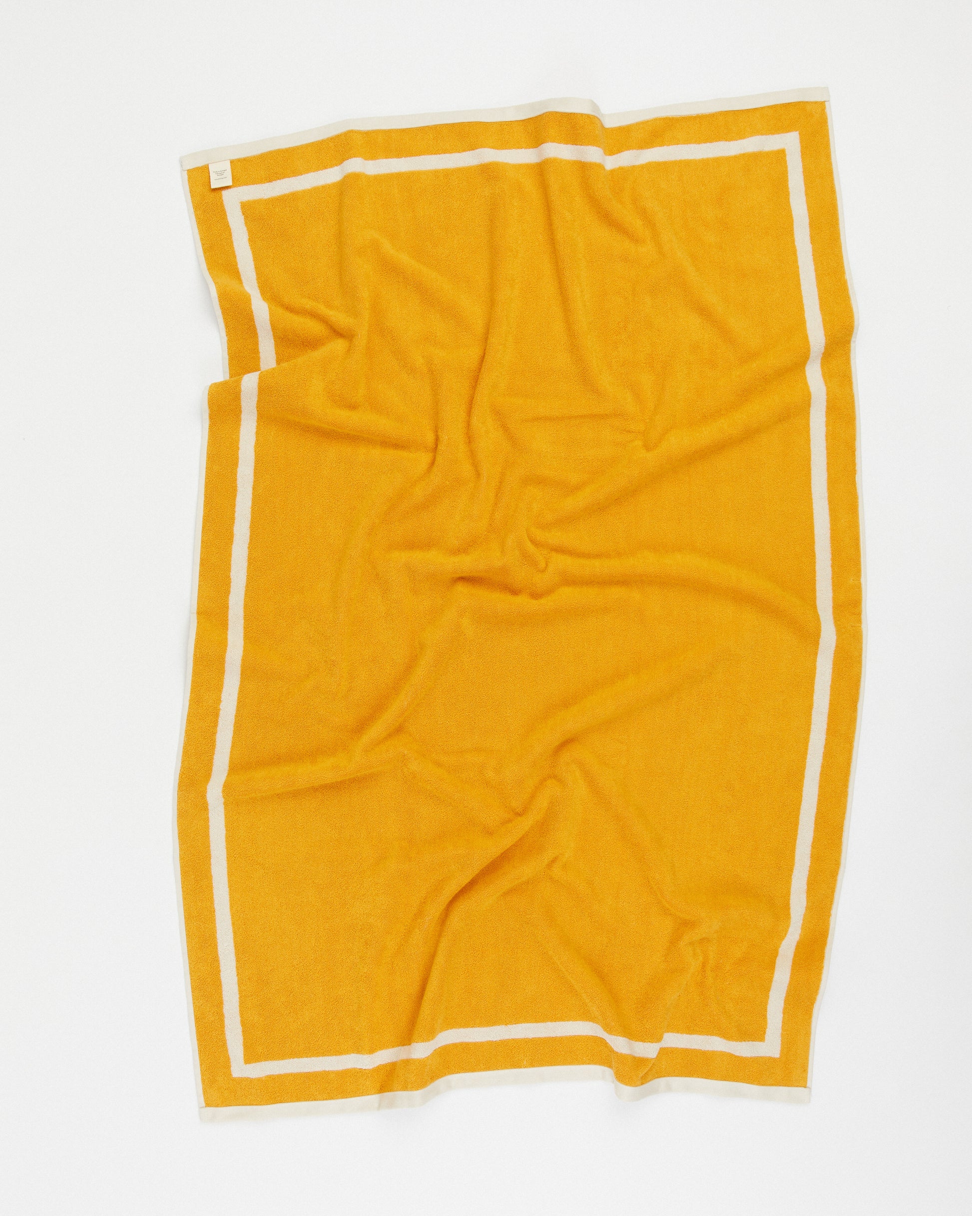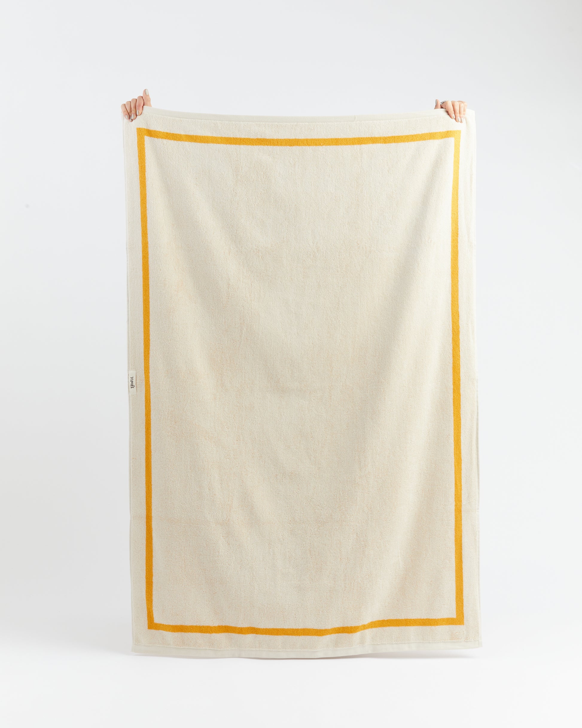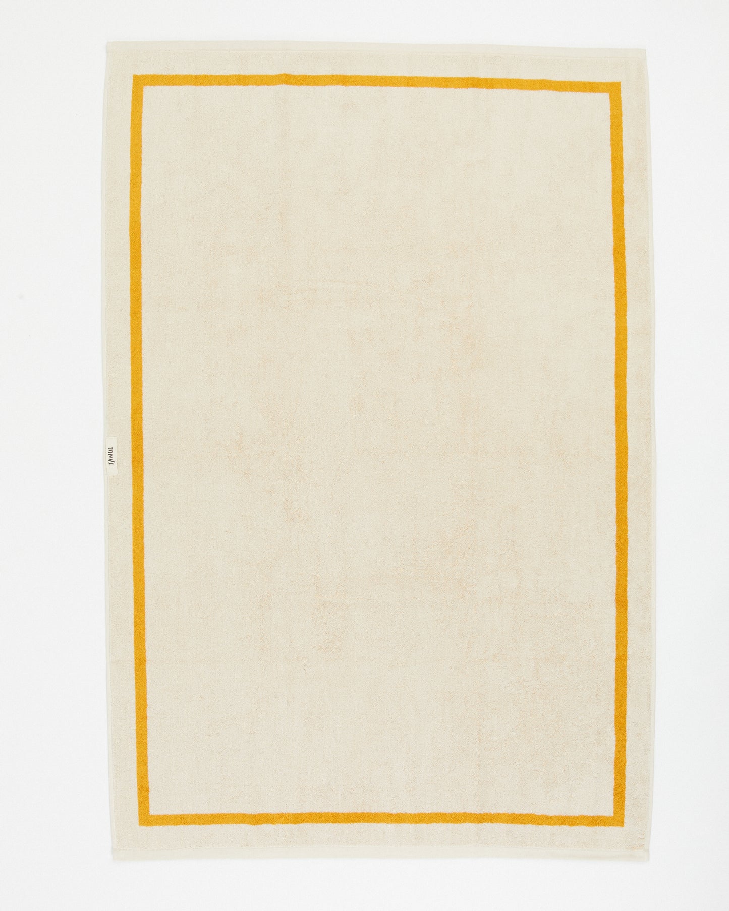 A truly heavenly and comfy towel. Designed in a vintage matchbox style and one in a classic boxed line, in ecru and yellow.